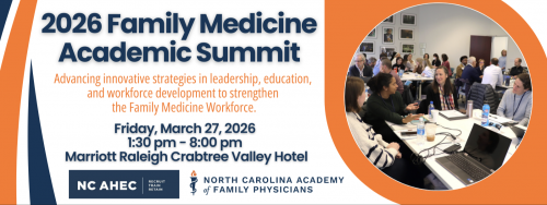 On March 27, the NCAFP will host the 2026 Family Medicine Academic Summit, which will bring the best educators and leaders together for a full day of exploring the best strategies to strengthen the Family Medicine workforce.